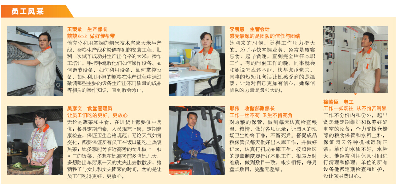 目前园区已建成年加工水稻20万吨生产线一条,年加工杂粮3万吨生产线一条。技术装备选用国内质量上乘的设备厂商,从硬件设施上为出产优质米提供了基础保证;生产工艺运用了双砂三铁四道碾米工艺、采用了双抛三选的加工布局,生产出的大米出米率高,色泽度好,赢得了市场好评。